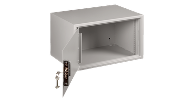 Шкаф бюджетное и эффективное решение для размещения телекоммуникационного оборудования небольшой глубины. Оборудование в шкафу размещается горизонтально, что способствует удобству монтажа и обслуживания. При небольших внешних габаритах внутри шкафа может быть установлено оборудование общей высотой 7U. В шкафу установлена одна пара 19” направляющих, предназначенных для монтажа оборудования. Направляющие в шкафу приварены и расположены на расстоянии 310 мм от задней стенки. На верхней стороне шкафа сзади попарно выполнены 4 отверстия кабельного ввода диаметром 22 мм. Для установки шкафа на стену, в задней стенке его выполнено 4 крепёжных отверстия диаметром 8 мм. Максимальная допустимая распределенная нагрузка на шкаф составляет 100 кг. Покрытие шкафа – порошковое, ударопрочное, полимерно-эпоксидное, цвет светло-серый (RAL 7035).