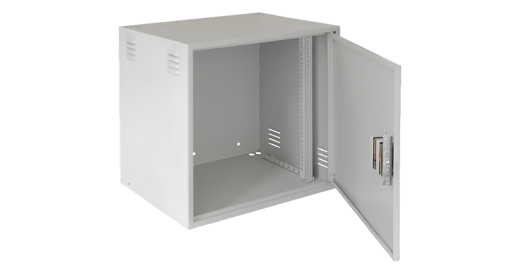 Шкафы сочетают в себе устойчивость ко взлому, высокое качество и привлекательную стоимость. Дверь шкафа однослойная, со скрытыми петлями и надежным 3-х ригельным замком. Удобство размещения 19’’ оборудования различной глубины обеспечивается одной парой регулируемых направляющих, с максимальным пределом регулировки 250 мм. Максимальная полезная глубина шкафа составляет 445 мм (расстояние от внутренней части передней двери до задней стенки). На боковых стенках шкафа имеются жалюзи, которые выполняют функцию естественной вентиляции путём подвода холодного и отвода горячего воздуха от установленного активного оборудования. Кабельные вводы расположены на днище и в крыше шкафа и выполнены в его задних углах. На левой боковой стенке снаружи установлен заземляющий болт М8 с гайкой и шайбой. Максимальная допустимая распределенная нагрузка на шкаф составляет 100 кг. Покрытие шкафа – порошковое, ударопрочное, полимерно-эпоксидное, цвет серый (RAL 7035).